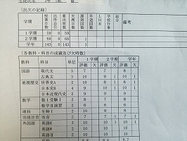 2年の成績は平均したらオール4ぐらいでした。たまに「2」がついたりもしていました。